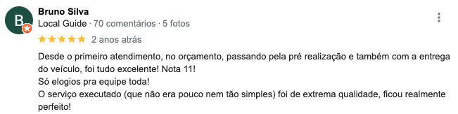 somos uma oficina altamente especializada em Estética Automotiva, Martelinho, Funilaria e Pintura, sempre buscamos sempre a entrega de serviços de alta qualidade, garantindo satisfação total ao cliente, sempre trabalhando com princípios de honestidade e respeito ao cliente!